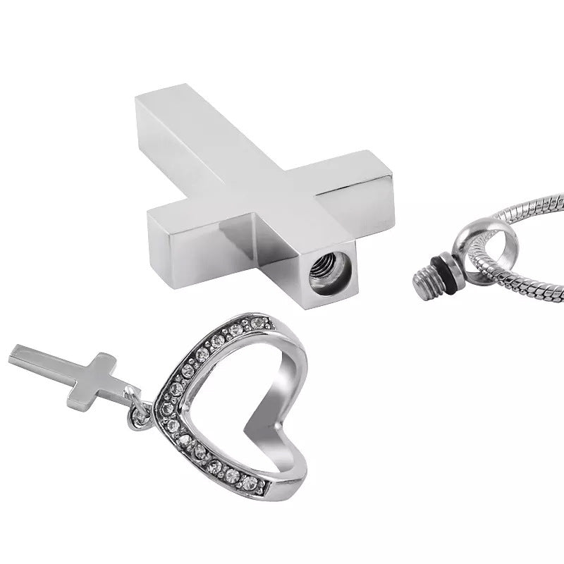 Cremation Urn Necklace Cross with Zircon Pendant for Ashes-A040