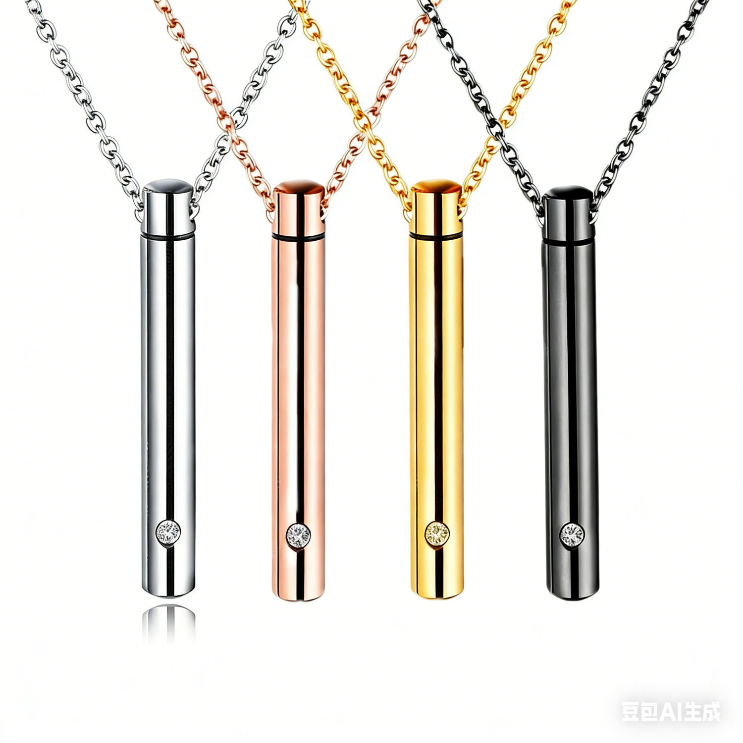 Cremation Urn Necklace Minimalist Cylinder Pendant Memorial Jewelry-A048